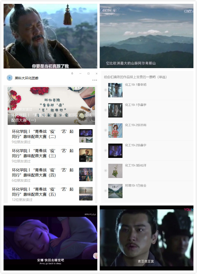 “青春战‘疫’,‘艺’起同行”创意短视频比赛共征集作品30余件,同学们充分发挥想象力与创造力,通过短视频的形式从日常生活、线上学习、美食分享等方面展现出了一幅幅积极向上的美好画面。最终,化工19-3班胡佳获得一等奖;化工19-1班申钰旭、化工19-2班黄莹莹获得二等奖;应化19-2班朱晶晶、环境19-2班任美颐、环境19-2刘洪微班获得三等奖;环境19-2班李天一、环境19-2班赵维、环境18-1班孙杰、化工19-3班陈松洋、环境19-2班何颖获得优秀奖。