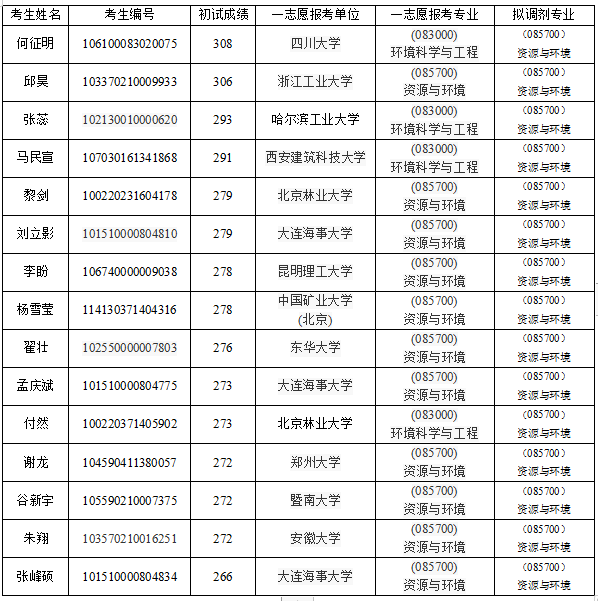 085700资源与环境(环境污染治理)参加复试考生名单公示