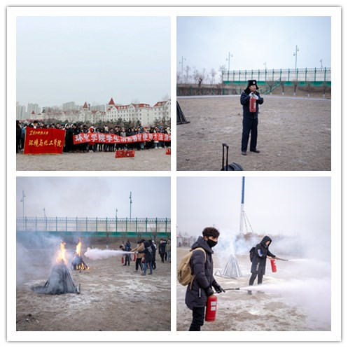 早上7时整,周国江宣布演练正式开始,随着指令的下达,火警警报声响起,公寓一楼冒出浓重烟雾并迅速蔓延,楼内同学在辅导员及员工干部的有序组织下,按照既定的疏散路线有序地从公寓安全出口迅速撤离。疏散演练过程紧张而有序,参演员工快速、安全地疏散到指定区域。疏散结束后,在门球场东侧,徐长明老师对全体员工进行了灭火器分类、使用步骤等统一培训,并指导师生代表使用灭火器进行灭火实践练习。