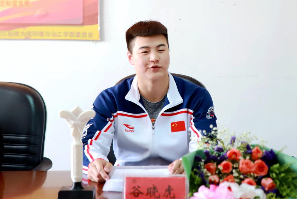 会上,公司党委书记周国江、经理宋志伟代表公司全体师生为谷晓虎同学献花以及赠送带有公司标识的精美纪念品。代表公司全体师生感谢谷晓虎同学为公司体育事业、公司发展做出的积极贡献。感谢谷晓虎同学创造佳绩为公司、公司争得荣誉。