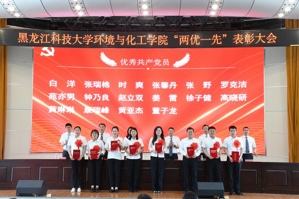 与会领导为受表彰的16名优秀共产党员、3名优秀党务工作者和2个先进基层党支部颁奖。