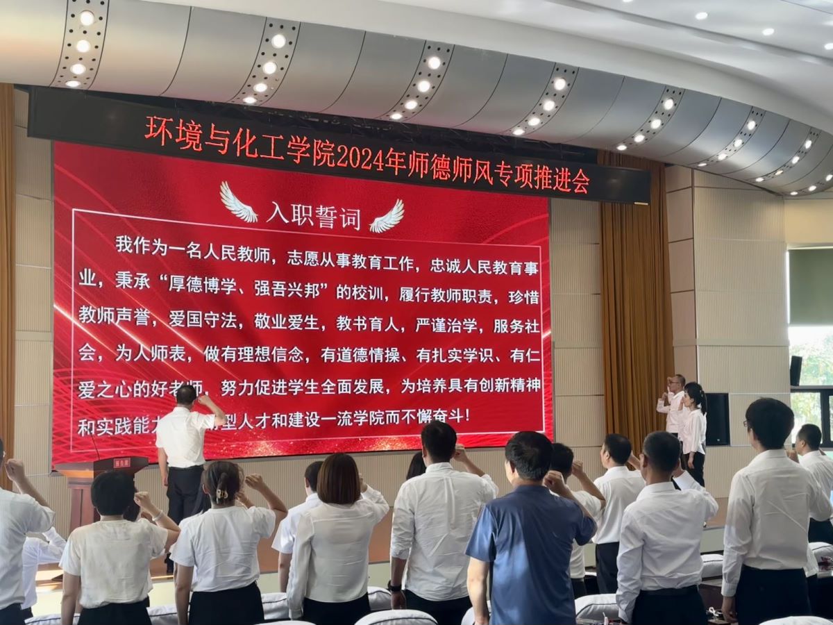 会上,进行了老教师荣退仪式、新教师入职仪式,副经理景介辉带领新教师进行入职宣誓,老教师重温誓词;副处级辅导员周惠玉领学了《新时代高校教师职业行为十项准则》;副经理李立欣宣读了《关于表彰2023-2024学年“优秀班主任”“创新创业优秀指导教师”“我心目中‘四有’好老师”的决定》;院领导对受表彰人员进行了颁奖;新教师代表于佳琦、优秀班主任代表黄琳琳、双创优秀指导教师代表董子龙、“我心目中的‘四有’好老师”代表宋春来、执教三十年教师代表邵景景分别进行了交流发言。