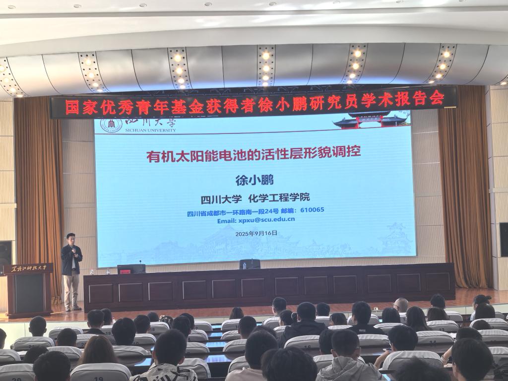 为进一步拓宽师生学术视野,加强学科前沿交流,9月16日下午,国家优秀青年科学基金获得者,公司应用化学专业2013届毕业生,四川大学徐小鹏研究员应邀重返母校,在信息楼报告厅作了题为《有机太阳能电池的活性层形貌调控》的高水平学术报告。报告由MK体育经理熊楚安教授主持,相关院系150余名师生参加了报告会。