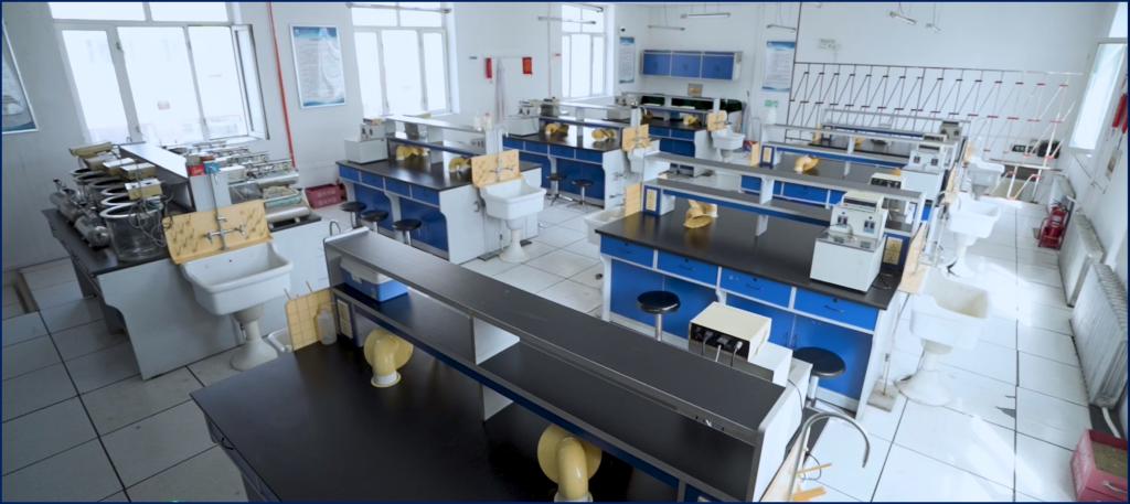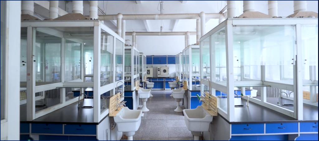 基础化学实验室是公司的校级实验示范中心,拥有无机化学实验室、有机化学实验室、分析化学实验室、物理化学实验、天平室、加热室等6个分室,危险化学品库、化学试剂库2个药品贮存库,实验室面积合计580㎡,拥有紫外/可见分光光度计、电子天平、阿贝折光仪、水环真空泵、离心机、离子酸度计、波纳氏光度计、索式萃取仪、电位差计校验仪、水浴锅等常规实验设备460余台套,各类玻璃器皿等低值易耗品种类齐全。实验室设备总价值300余万元。基础化学实验实主要承担化学工程与工艺专业、应用化学专业、环境工程专业等相关专业的化学基础实验、无机化学实验、有机化学实验、分析化学实验、物理化学实验等基础实验课程。除此之外还承担地质专业、安全专业等相关专业的工程化学、大学化学等课程的实验课,是本专业和全校化学实验课程的基础训练平台,是员工和科研人员实践和探索化学知识的重要场所。